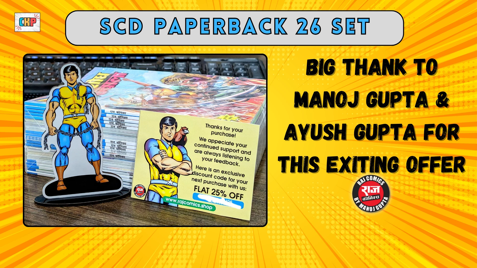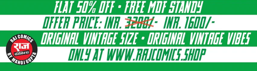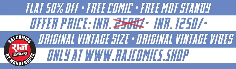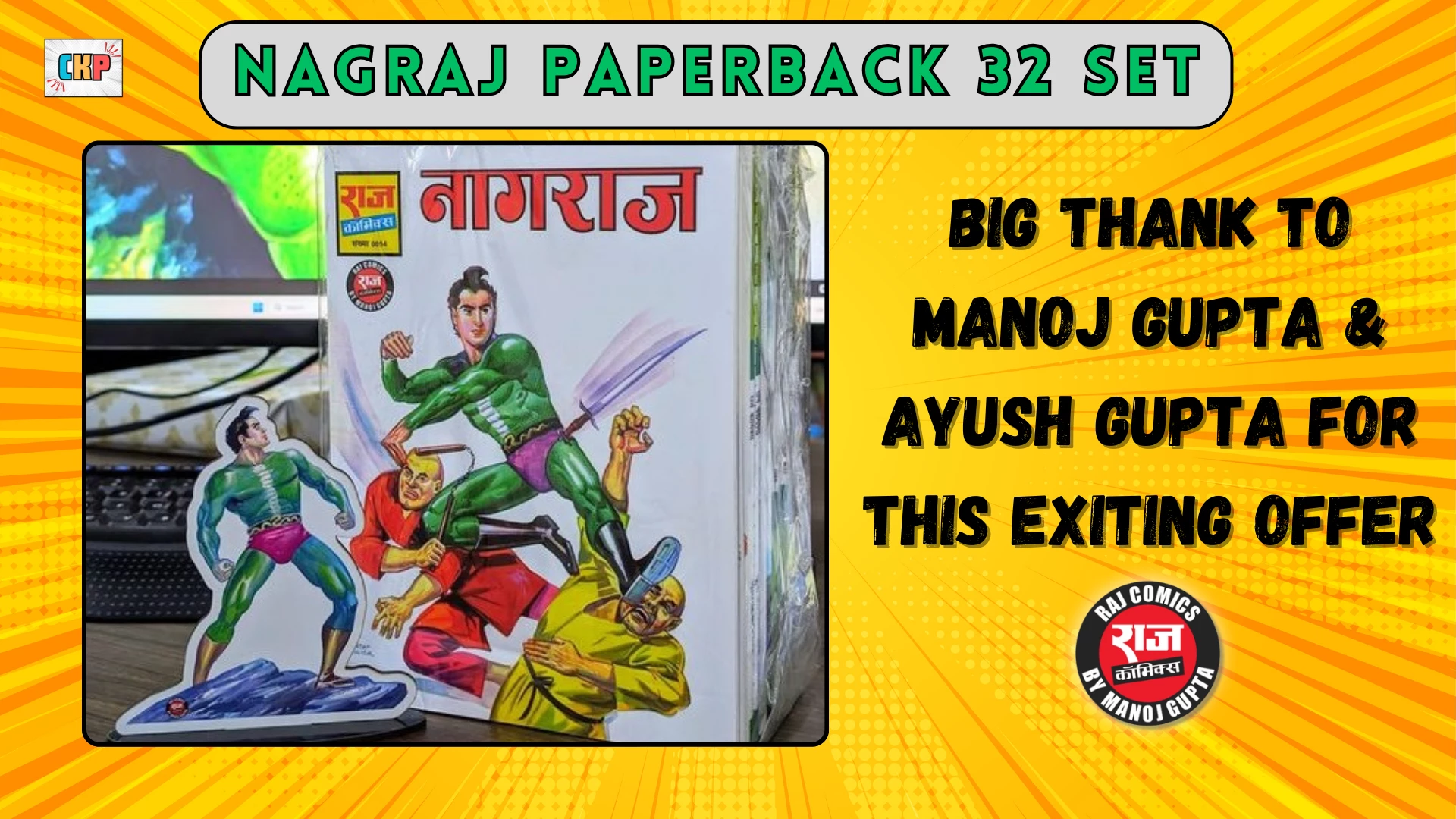 नागराज और सुपर कमांडो ध्रुव की जनरल कॉमिक्स खरीदने के लिए अब हमें प्रति कॉमिक 100 रुपये चुकाने होंगे। पर अभी आपके पास एक सुनहरा मौका है। राज कॉमिक्स by मनोज गुप्ता जी लेकर आये है 50 % डिस्काउंट के साथ नागराज के सुरुआत के 36 जनरल कॉमिक्स और सुपर कमांडो ध्रुव के 25 सुरुआत के कॉमिक्स और साथ में 1 एक्स्ट्रा कॉमिक्स फ्री तो हो गए 26 कॉमिक्स।