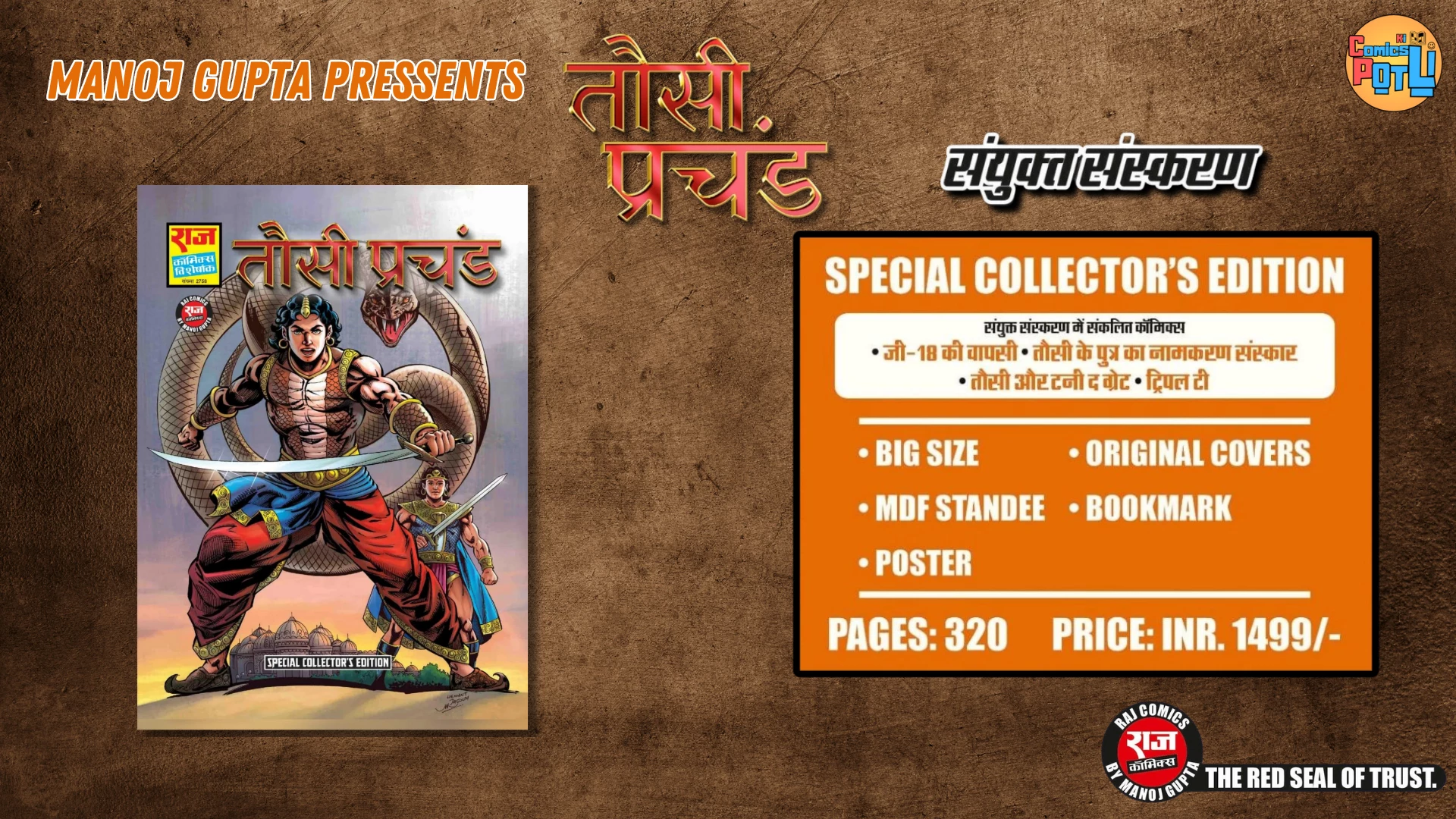 राज कॉमिक्स मनोज गुप्ता की तरफ से एक नई कलेक्टर एडिशन रिलीज़ होने वाली है जो है Tausi Collector Edition इस कलेक्टर एडिशन में शामिल है तौसी के चार विशेषांक। ये चार विशेषांक है